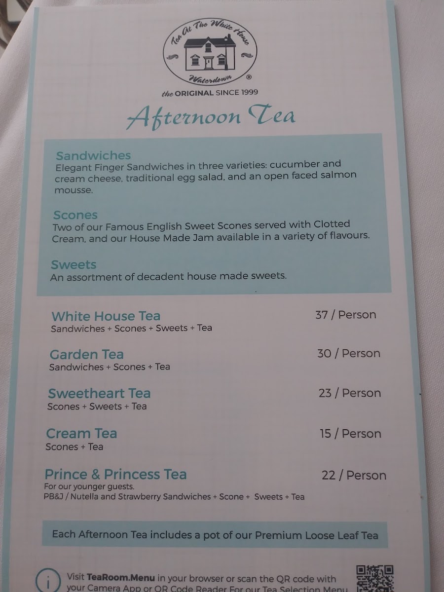 We recently visited "Tea At The Whitehouse" for Afternoon Tea and it was simple classy elegance! We both had the full tea (35pp). Everything is immaculately presented with a huge selection of loose leaf teas to choose from. There were lots of fresh berries making the tiers look nice. Our favourite bite was the creme brulee served on the day we went. Take note that the location and name is confusing as there are two tea houses in Waterdown so make sure you're going to the correct tea house in Waterdown when you book (this is the one on the side street in a retail plaza)! Their retail items are also perfect for some quick CUTE gifts. We definitely recommend this Tea experience. #OntarioTeaRooms